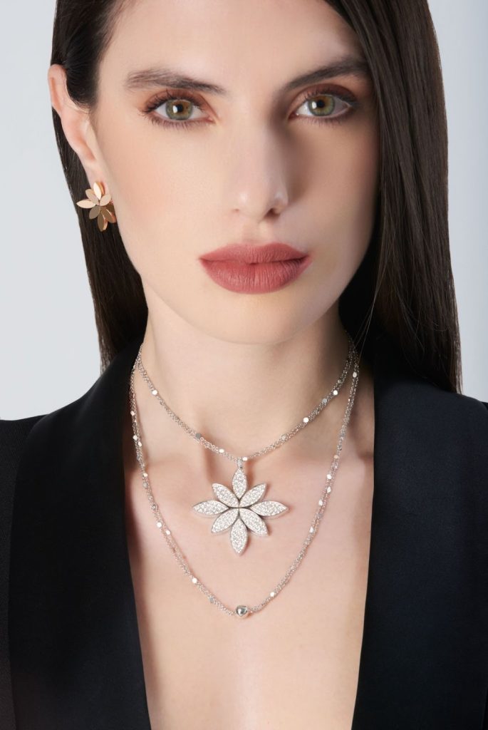 تبرز ضمن المجموعة قطع Ghirlanda Luce di Loto الأيقونية، ومنها السوار، الخاتم والعقد المتدلّي، التي تعكس مهارة الدار الحرفية وتوازنها الشاعري. من خلال منحنياتها الرقيقة وأسـطحها المتألّقة، تلتقط الضوء كما تفعل تموجات الماء الساكن، في احتفاء ثنائي بالظل والإشراق، وبالتجدد كقيمة أزلية.