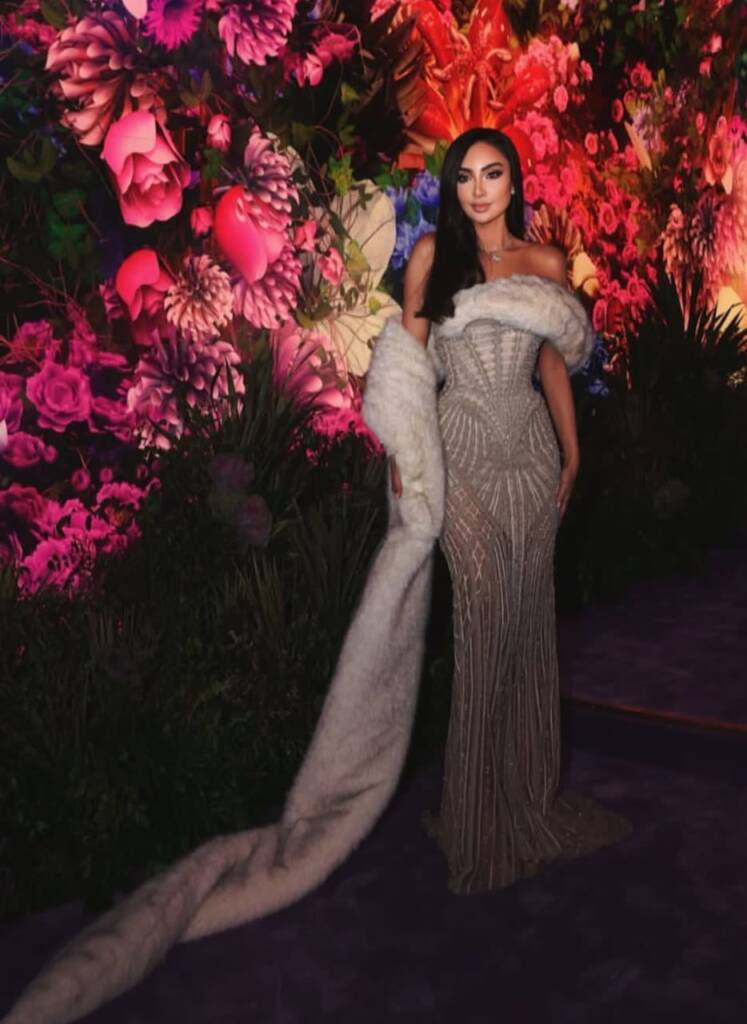 سفيرة دار تيفاني آند كو في الشرق الأوسط، نانسي عجرم، خطفت الأنظار بقلادة Bird on a Rock الأيقونية، المصنوعة من الذهب الأصفر عيار 18 قيراط والبلاتين، والمرصّعة بـ148 ماسة بتقطيعات الماركيز بإجمالي يفوق 4 قيراط، تتوسّطها حجر سيترين فاخر بتقطيع Cushion Cut يناهز 16 قيراطاً، يتوّجه طائر مرصّع بالألماس والياقوت الوردي، في قطعة تُقدَّر قيمتها بنحو 85 ألف دولار.