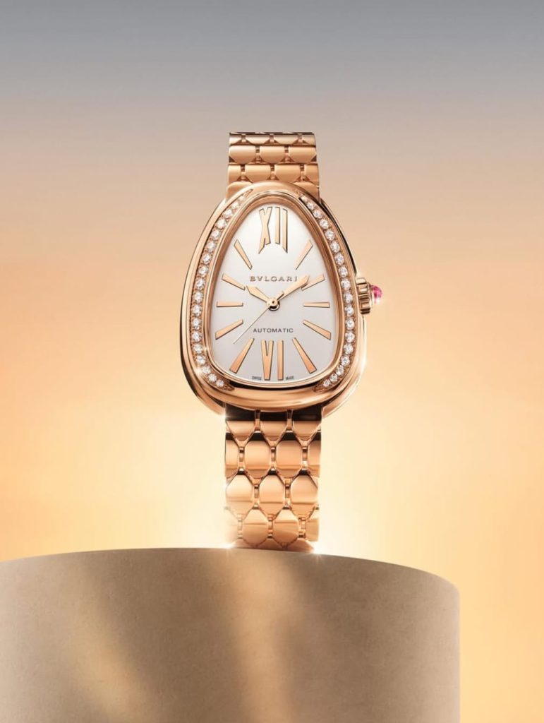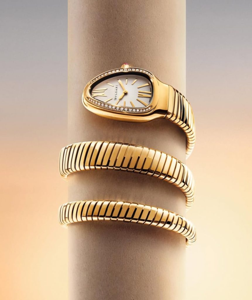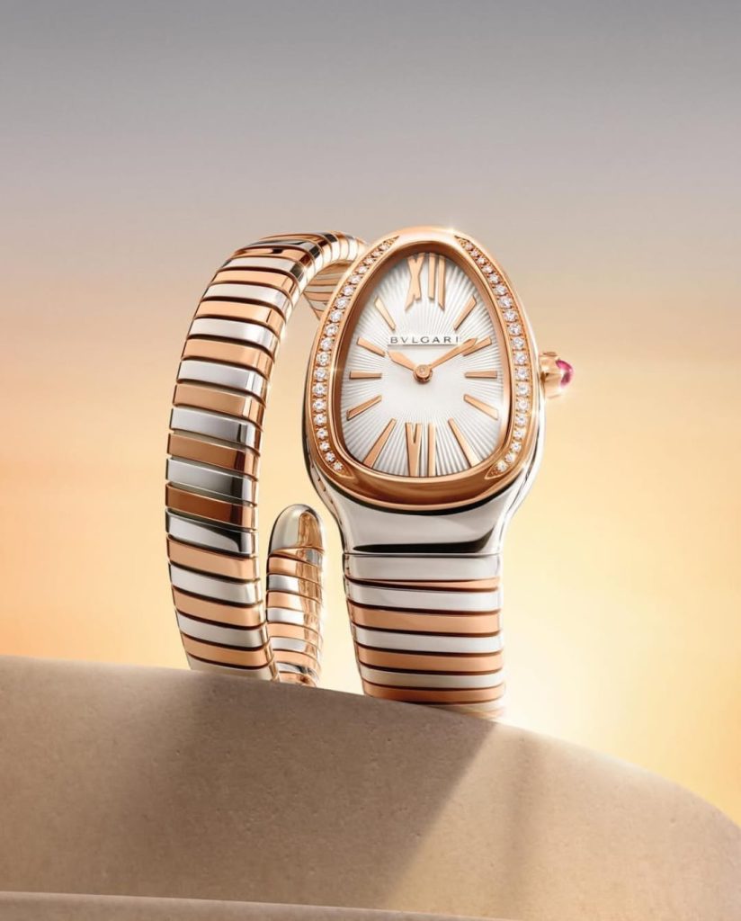 ولا تكتمل المجموعة من دون ساعات Serpenti الأيقونية، التي تجمع بين روح المجوهرات الراقية وفن صناعة الساعات. تأتي بعلبة بيضاوية مستوحاة من رأس الأفعى، وسوار يلتف حول المعصم بمرونة لافتة، مع ترصيع ألماسي دقيق يضفي بعداً فاخراً، ويحوّل الساعة إلى قطعة مجوهرات بحد ذاتها.