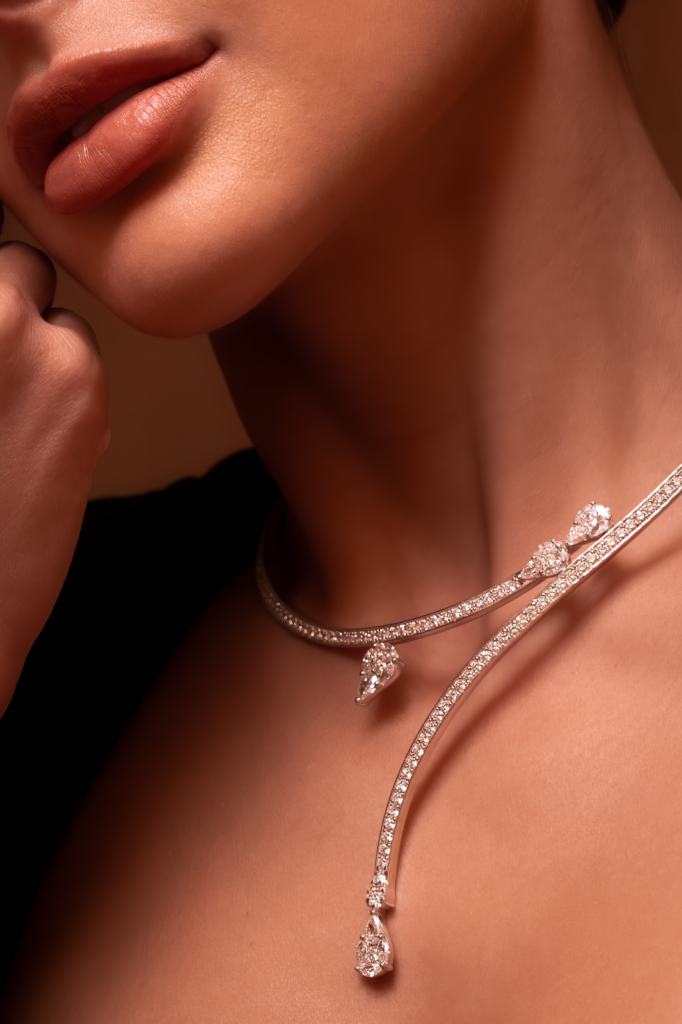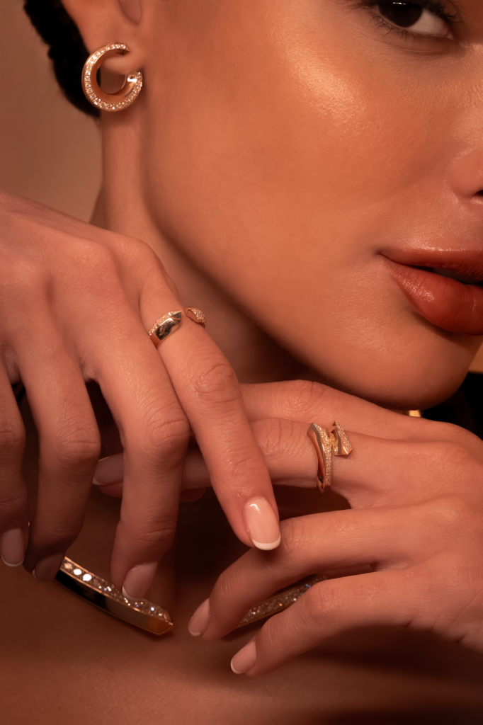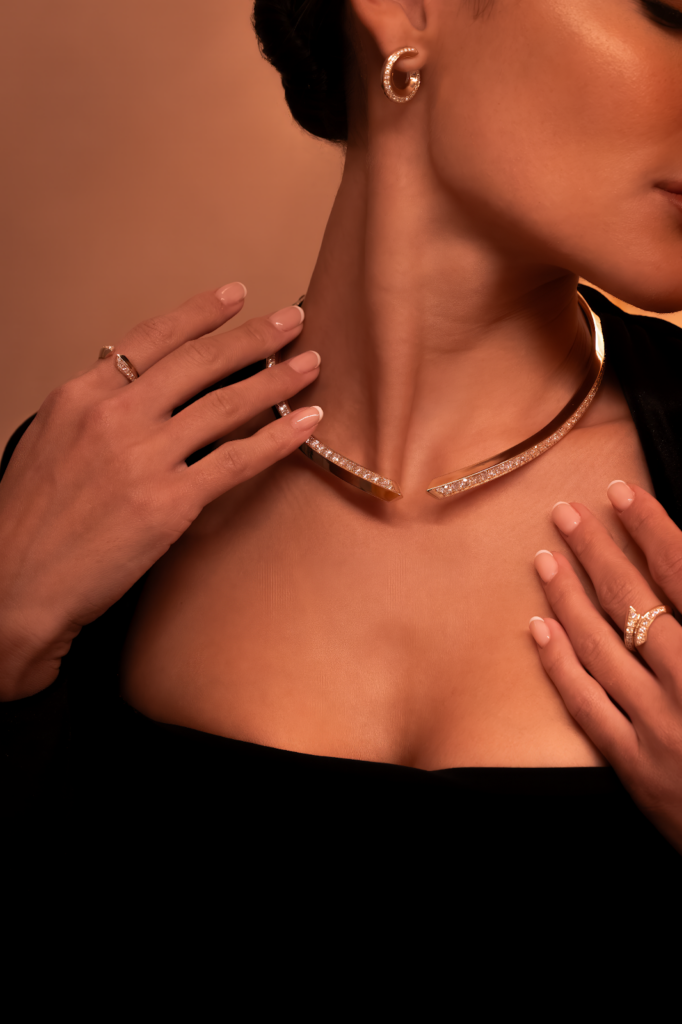 في المقابل، تستلهم مجموعة Dunes روحها من مشاهد شبه الجزيرة العربية، حيث تترجم التفاعل الأبدي بين الرياح والرمال إلى أشكالٍ نحتية تعبّر عن الصبر والزمن. تأتي تصاميم المجموعة من الذهب الأبيض والأصفر، مرصّعةً بألماسٍ متألّق، لتجسّد قوّةً هادئة وأناقة متجذّرة في طبيعة أرضٍ تشكّلت ملامحها عبر القرون.