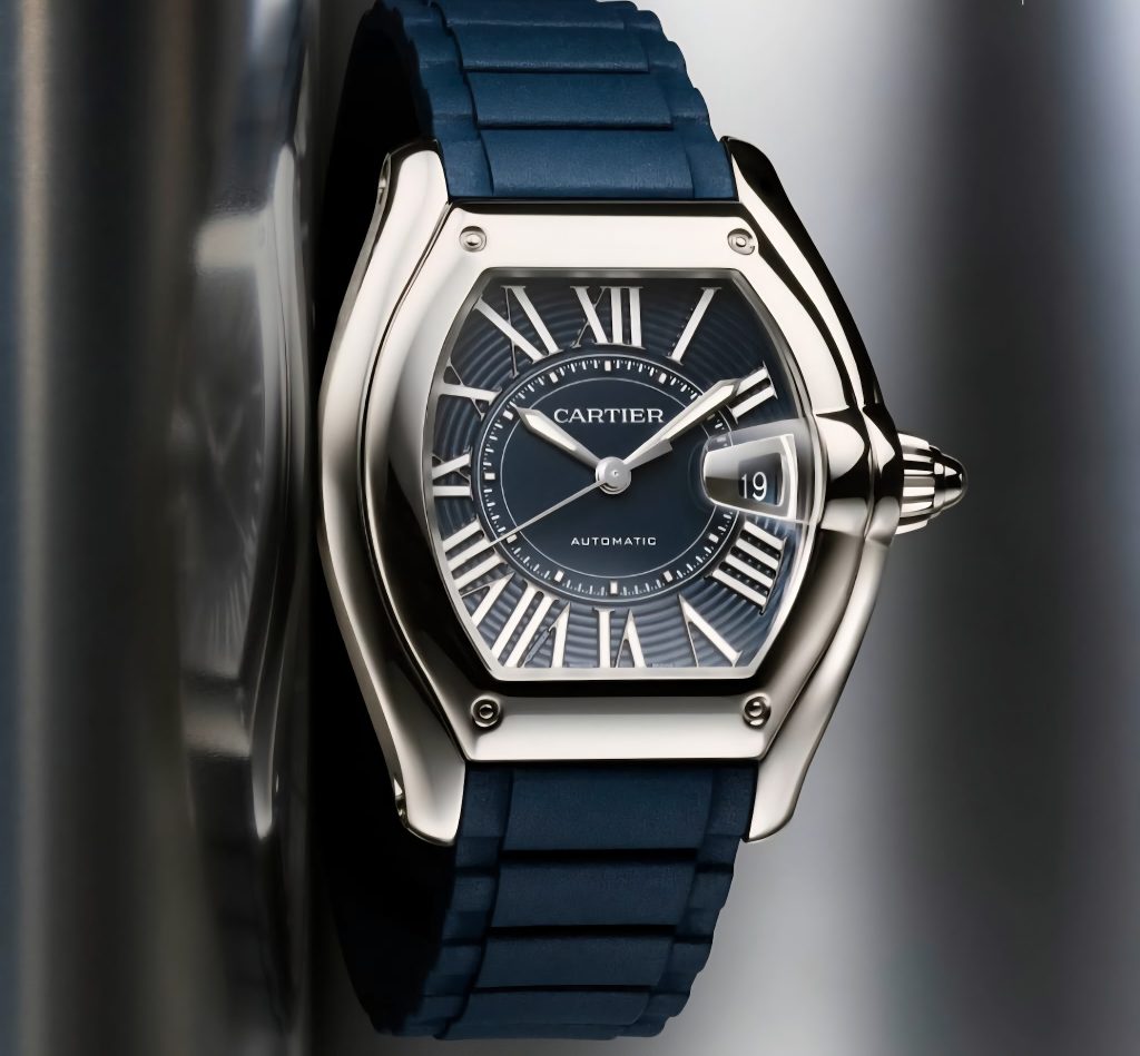 تفتتح كارتييه مجموعتها مع عودة لافتة لساعة Roadster، التي تستلهم روحها من عالم السيارات الرياضية. يأتي التصميم بانسيابية واضحة تعكس قوة الهيكل المعدني، بينما تبرز المينا الزرقاء العميقة بتفاصيلها الدائرية الجذابة.