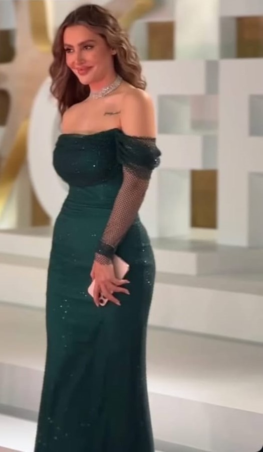 تألّقت مرام علي بإطلالةٍ أخّاذة بفستانٍ أخضر فاتن ، يُبرز ملامحها برومانسيةٍ راقية. وفي وسط هذه اللوحة الخضراء، اختارت قطعة مجوهرات ملفتة تُجسّد التوازن المثالي بين الجرأة والفخامة: تشوكرٌ براق بالكامل من Iram Jewelry، مصنوع من الذهب الأبيض ومرصّع بالألماس بأناقة فائقة.