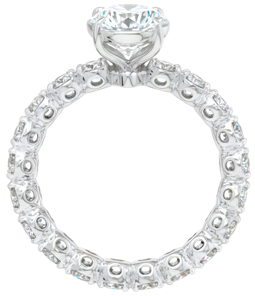 من الناحية التقنية، صُنع الخاتم من ذهب أبيض عيار 18 قيراط مع تشطيب بالروديوم، ما يمنحه بريقاً ناصعاً ومقاومة إضافية. اعتمد التصميم على هندسة Comfort Fit حقيقية، حيث جرى تدوير وتنعيم الداخل بالكامل ليبدو الخاتم كأنه قطعة واحدة متصلة، كأنه صُهر من كتلة ذهب واحدة دون فواصل.