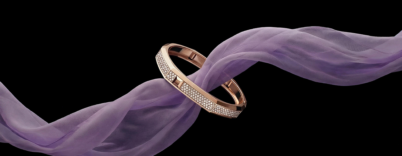 تعيد “موديرنيست” صياغة العلاقة مع الضوء عبر أسطح من الذهب المصقول والمطفأ، تتناوب عليها الانعكاسات في حركة انسيابية تُحاكي روح الاتزان التي تميّز رمضان. ويمتد هذا الإيقاع المتوازن بين الحركة والثبات من خلال هرم مجرّد بتوزيع غير متماثل، يشكّل توقيعاً بصرياً يتوّج كل قطعة ويمنحها حضورها الخاص. ورغم أن الذهب يتصدّر المشهد، تحضر الألماسات ببريق خفيّ، إمّا بترصيع متلألئ دقيق أو بتفاصيل تتوّج الهرم نفسه. فتمنح كل تصميم لمسته النهائية من الضوء.