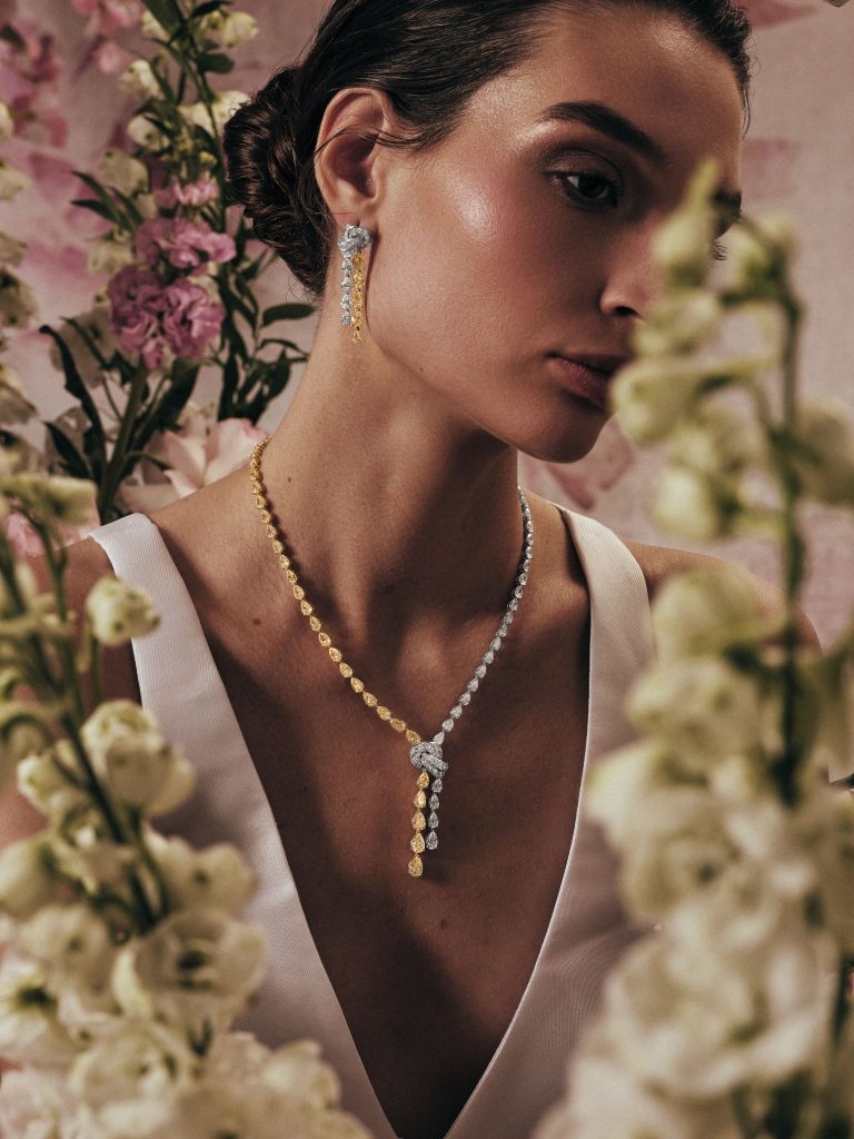 تُصاغ كل جوهرة يدوياً على أيدي حرفيين حائزين على جوائز، باستخدام أجود أنواع الألماس الطبيعي وأندر الأحجار الكريمة المستقدمة من مختلف أنحاء العالم. وتزخر المجموعة بألماس أصفر فخم، وألماس أبيض نقي، وياقوت أزرق، وزمرد غني، وروبيّ نابض بالحياة. وتستلهم لوحة الألوان جذورها من التقاليد الملكية، مع نفَس معاصر يعكس ذوق المرأة الحديثة. كما أن العديد من القطع فريدة من نوعها، ومقدّر لها أن تُورث كتحف عائلية خالدة عبر الأجيال.